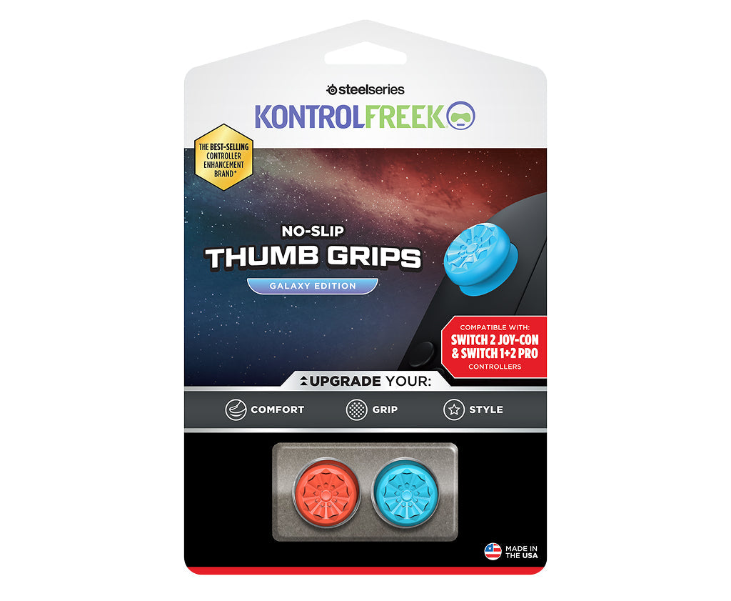 Featuring our best-selling Galaxy design, KontrolFreek® No-Slip Thumb Grips™ – Galaxy Edition utilize proprietary GripTek™ material to deliver maximum grip, comfort, and control in every game you play. Styled to match Nintendo Joy-Con 2 accent colors, this 4-pack adds stellar style and performance to your Nintendo Switch 2 Joy-Cons and Switch 1 & 2 Pro Controllers.